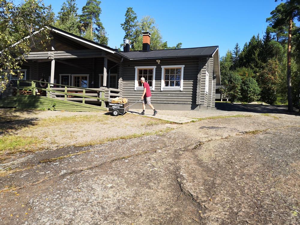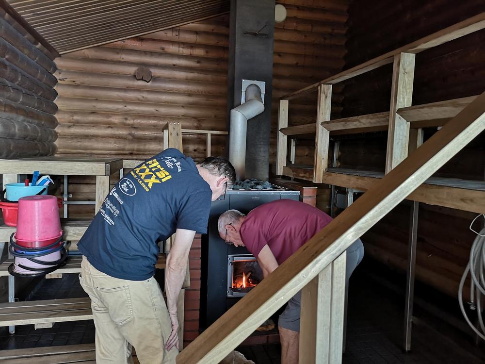 Saunamajuri hommissa,tärkein toiminto rantapäivänä