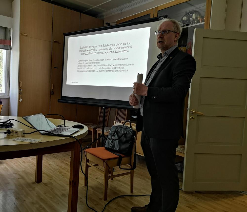 Juha Teerialho esittelee pankin toimintaa ja fuusiota.