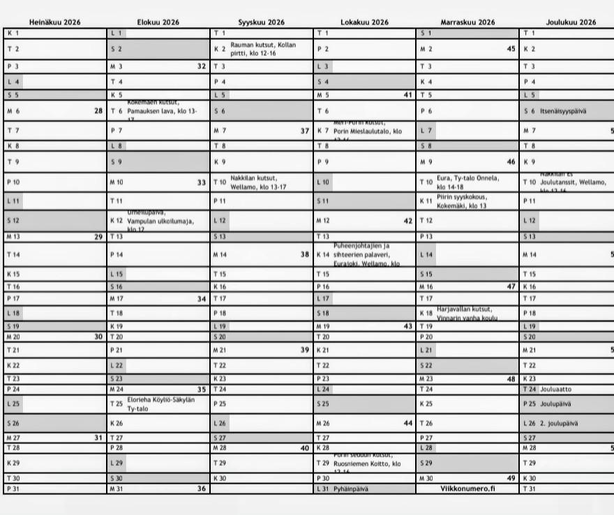 Piirin ja Yhdistysten tapahtumat 2026